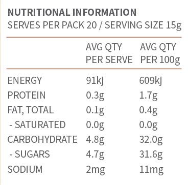 Ingredients: Onions 72%, Sugar, Vinegar, Sultanas, Mustard Seeds and a blend of herbs and spices